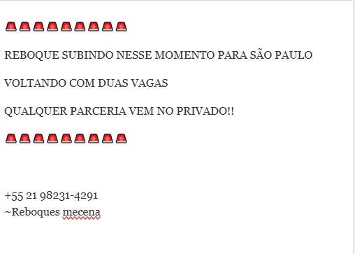 Byadminjaneiro 6, 2025🚨🚨🚨🚨🚨🚨🚨🚨🚨 REBOQUE SUBINDO NESSE MOMENTO PARA SÃO PAULO VOLTANDO COM DUAS VAGAS QUALQUER PARCERIA VEM NO PRIVADO!! 🚨🚨🚨🚨🚨🚨🚨🚨🚨 +55 21 98231-4291 ~Reboques...